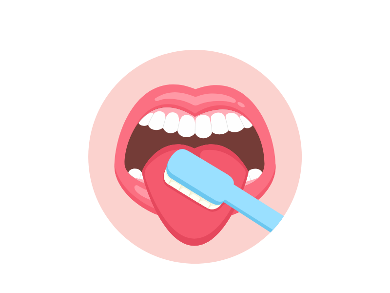 舌の表面に付着する舌苔(ぜったい)には、多くの細菌が潜んでいます。舌ブラシや専用のスプーンでやさしく取り除くことで、口腔内の細菌量を減らせます。