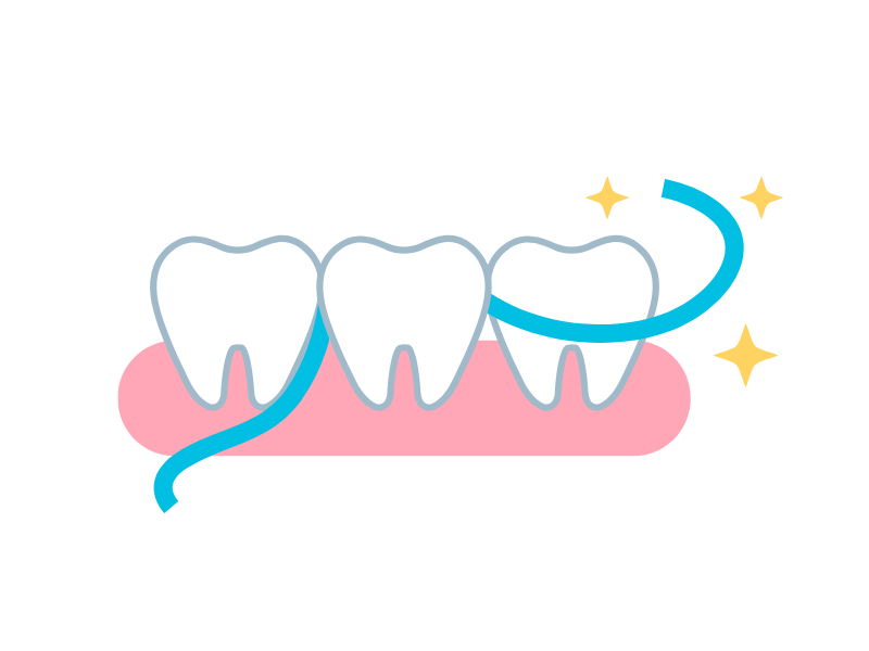 歯ブラシだけでは取りきれない歯と歯の間の汚れは、フロスや歯間ブラシでしっかり除去します。細菌の繁殖を抑え、肺炎リスクを下げることにつながります。