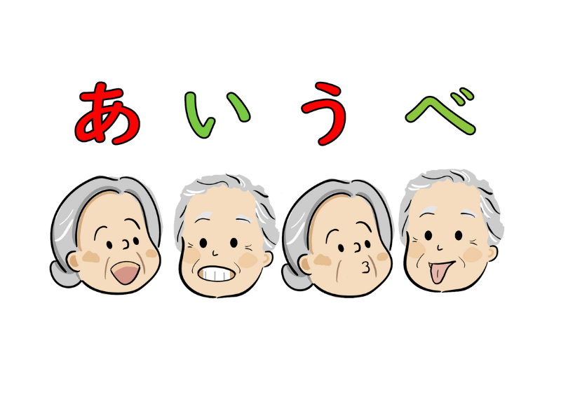 「あ」で口を大きく開け、「い」で口角を上げ、「う」で唇を突き出し、「べ」で舌を下に伸ばすトレーニングで、口周りの筋肉をバランスよく動かす運動です。